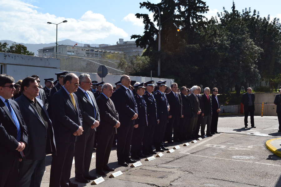 Παρέστησαν ο Υπουργός Δημόσιας Τάξης κ. Νικόλαος Δένδιας, ο Γενικός Γραμματέας Δημόσιας Τάξης κ. Αθανάσιος Ανδρεουλάκος, ο Γενικός Γραμματέας Πολιτικής Προστασίας κ. Πάτροκλος Γεωργιάδης, οι βουλευτές της Νέας Δημοκρατίας κ. Δημήτρης Τσουμάνης και Δημήτρης Κυριαζίδης, ο Βουλευτής του ΣΥΡΙΖΑ-ΕΚΜ κ. Δημήτρης Τσουκαλάς, ο εκπρόσωπος του ΠΑΣΟΚ κ. Θεόδωρος Τσίκας, ο βουλευτής των Ανεξάρτητων Ελλήνων κ. Τέρενς Κουίκ, ο εκπρόσωπος της Δημοκρατικής Αριστεράς κ. Βασίλειος Μαστρογιάννης, ο Υποδιοικητής της ΕΥΠ κ. Γεώργιος Καμαρινόπουλος. Σύσσωμη παρέστη η Ηγεσία της Ελληνικής Αστυνομίας με επικεφαλής τον Αρχηγό Αντιστράτηγο κ. Νικόλαο Παπαγιαννόπουλο, ανώτατοι αξιωματικοί των Κλάδων και Υπηρεσιών του Αρχηγείου και των αστυνομικών υπηρεσιών της ΓΑΔΑ, αστυνομικό προσωπικό, ο πρόεδρος της Πανελλήνιας Ομοσπονδίας Αποστράτων Σωμάτων Ασφαλείας κ. Θεόφιλος Αθανασίου, ο πρόεδρος της ΠΕΑΛΣ κ. Δημήτρης Σαϊτάκης, καθώς και συγγενείς των αδικοχαμένων συναδέλφων μας.
